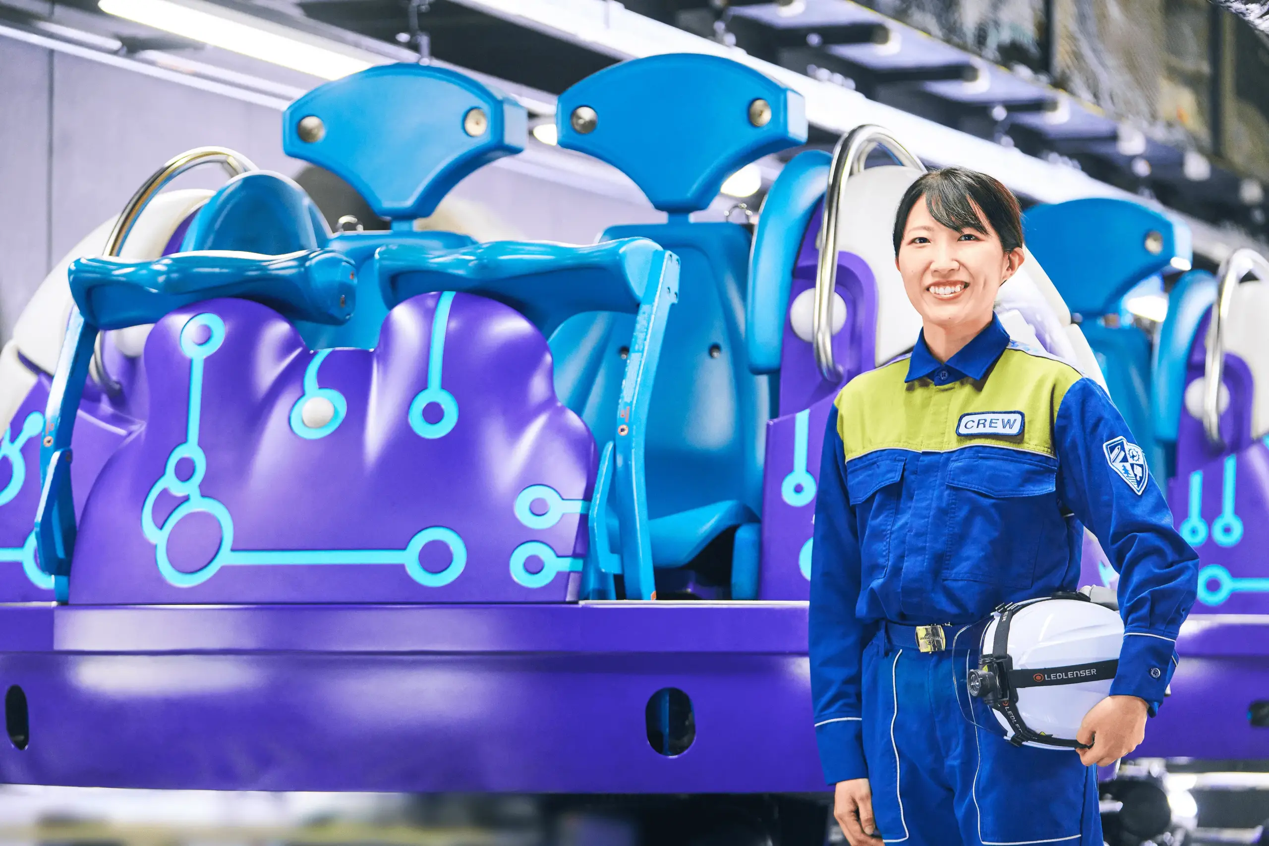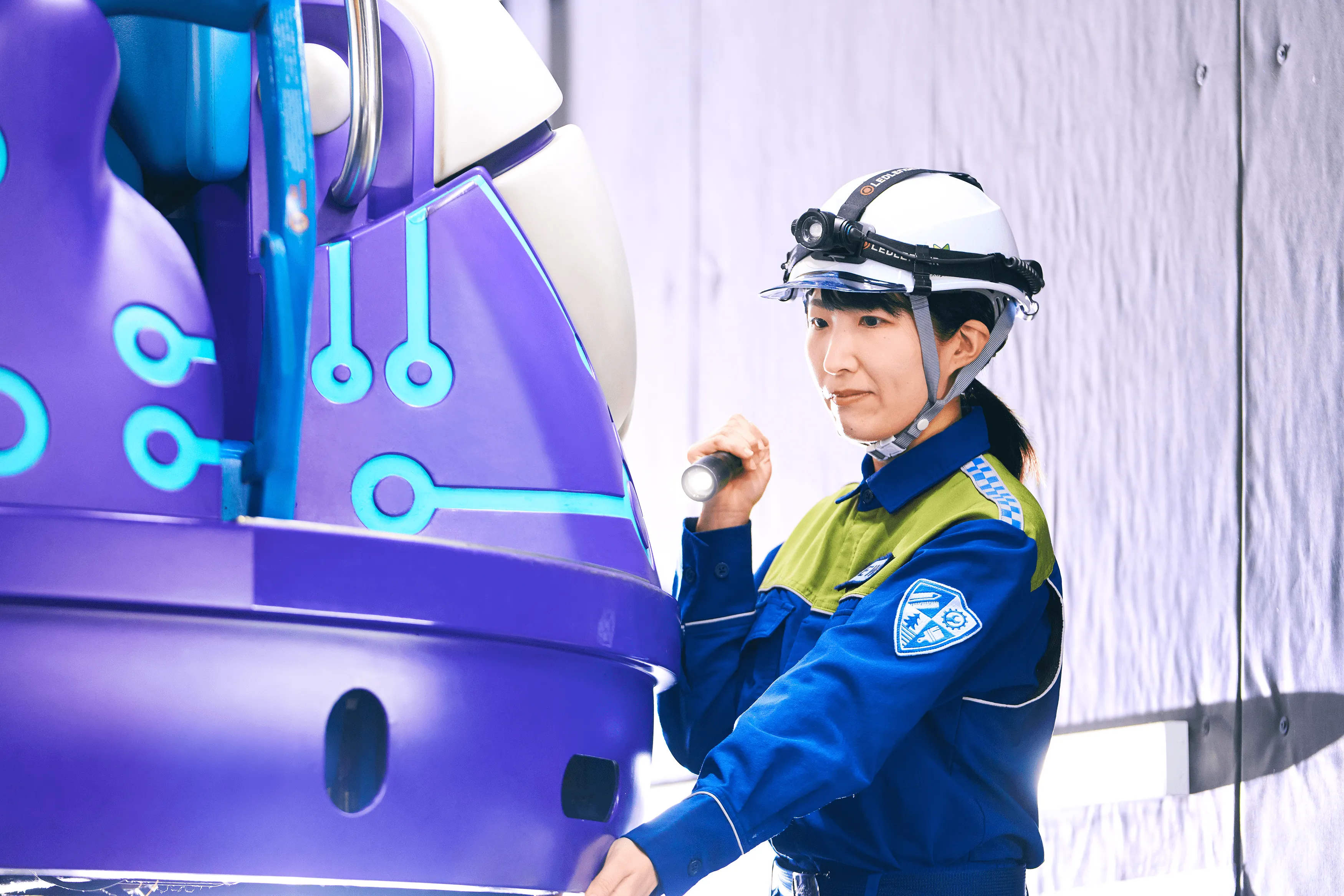 ゲストに"安心・安全"なアトラクションをご提供できるように、丁寧でクオリティの高いアトラクションメンテナンスを心掛けて業務に励んでいます。