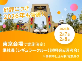 クルーのおしごとに興味がある方、新しいことにチャレンジしたい方、大歓迎!2026年3月で、開業25周年を迎えるユニバーサル・スタジオ・ジャパンでクルーになって、一緒にパークを盛り上げませんか!?