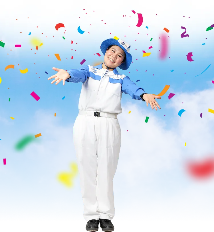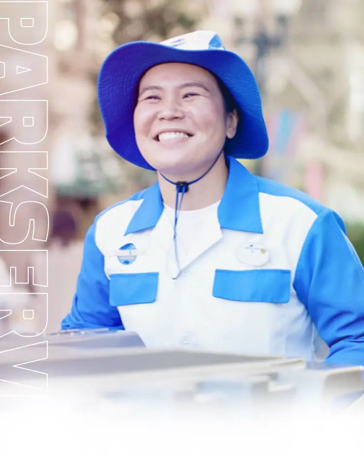 担当するエリアの路面、ベンチ、お手洗いの清掃やゴミ回収など、パーク内を隅から隅までキレイに清掃します。さまざまな種類の清掃道具の使い方やパークの知識がしっかり身につきます。ゲストとコミュニケーションをとる機会がとても多く、写真撮影や施設案内など、パークの魅力を伝えてさらに楽しんでもらえるようお手伝いをします!